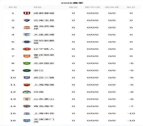 2026中超9队负分开局