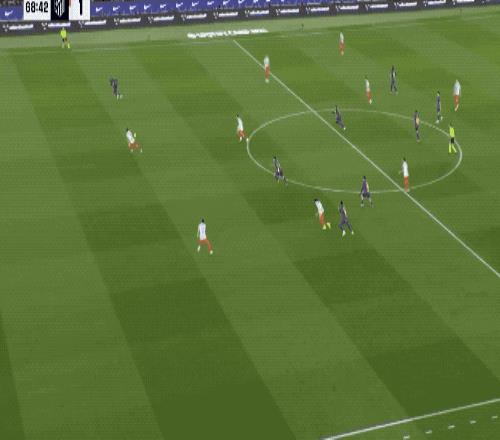 第65分钟,巴萨在前场错进错出,莱万送出助攻,奥尔莫的射门帮助巴萨再次取得领先,进球后的奥尔莫捂着肩膀,再次受伤。