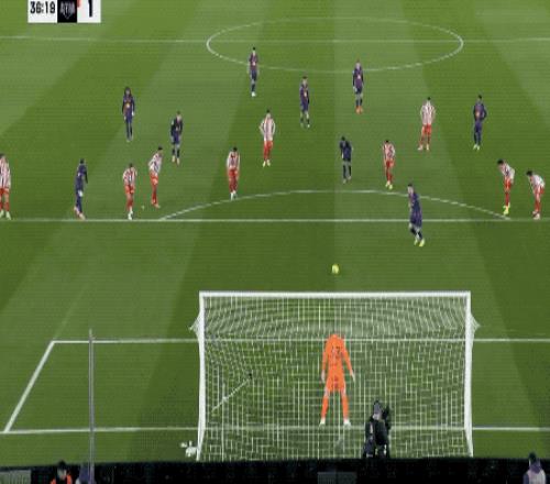 莱万操刀主罚,出人意料的是,莱万的点球打出了冲天炮,巴萨错失上半场领先的好机会。之后,莱万的近距离头球被奥布拉克扑出,半场结束,两队暂时战成1-1平。