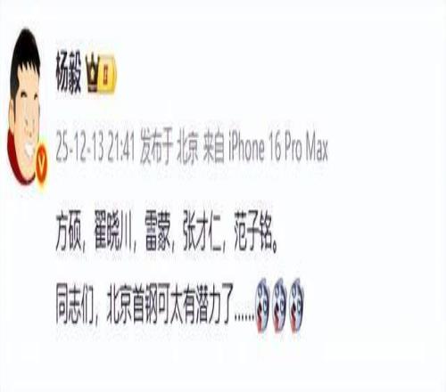 难怪看到这样的局面,外界都在吐槽了,连名嘴杨毅都忍不住了,直言:北京首钢太有潜力了……