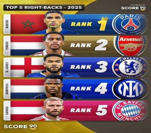 北京时间12月31日,Score90公布了根据他们的数据统计选出的2025年五大后卫,其中在中卫位置上加布里埃尔排名第一,而两个边后卫则是巴黎的双边卫阿什拉夫、努诺-门德斯。