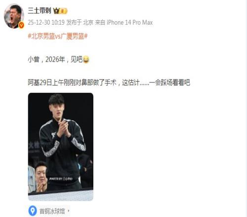 北京时间12月30日,北京将坐镇主场迎战卫冕冠军广厦,北京主帅许利民透露曾凡博无缘登场,他的回归首秀将是2026年1月1日主场对阵广东的焦点京粤大战。至于陈盈骏已经接受鼻骨骨折手术,但不会缺席太久比赛。
