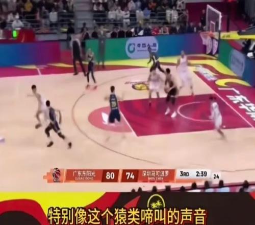 结果在抖音的CBA官方直播间,CBA的官方解说犯病了,他在第三节嘲讽广东主场的球迷喊声是“猿声”,还说“听到了两岸猿声”、“刚才谁要球的声音特别喜感,特别像猿声啼叫”、“感觉误入了花果山”。
