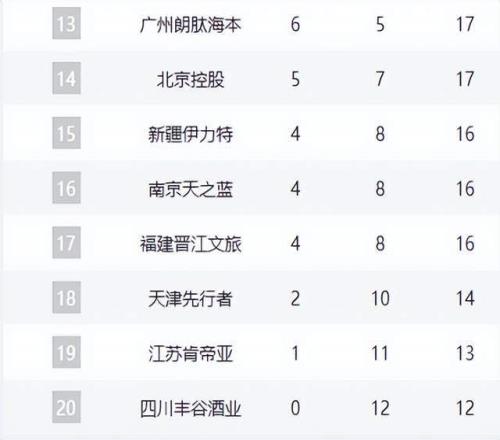 最后三名天津、江苏和四川已经基本锁定就是后三名位置。这三支球队不仅在战绩上落后,在阵容深度和比赛经验方面也存在明显差距,想要在赛季后半程实现逆袭难度极大。